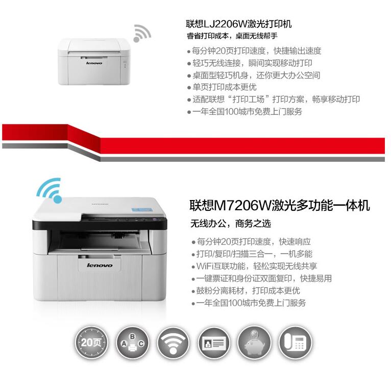 聯(lián)想M7206WM7206黑白激光無線WiFi一體機(jī)打印機(jī)辦公家用A4黑白打字復(fù)印件